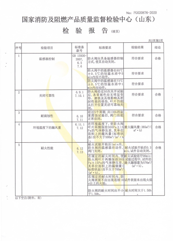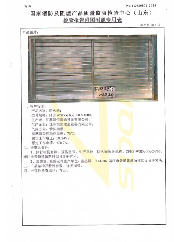 防火閥認證證書2000X1000